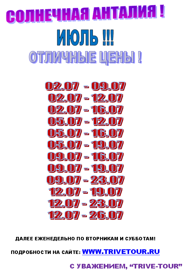 04 Май 2011 15:04:19 ТУРЦИЯ. СОЛНЕЧНАЯ АНТАЛИЯ, ИЮЛЬ МЕСЯЦ от фирмы TRIVE ТУР