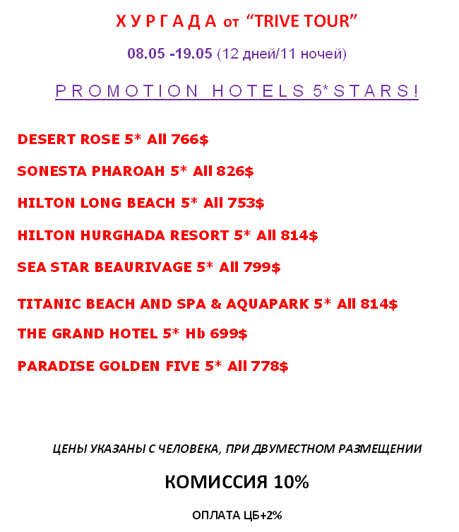 05 Май 2011 16:00:14 ЕГИПЕТ - ХУРГАДА - СПЕЦ ПРЕДЛОЖЕНИЕ 08/05 от фирмы TRIVE ТУР
