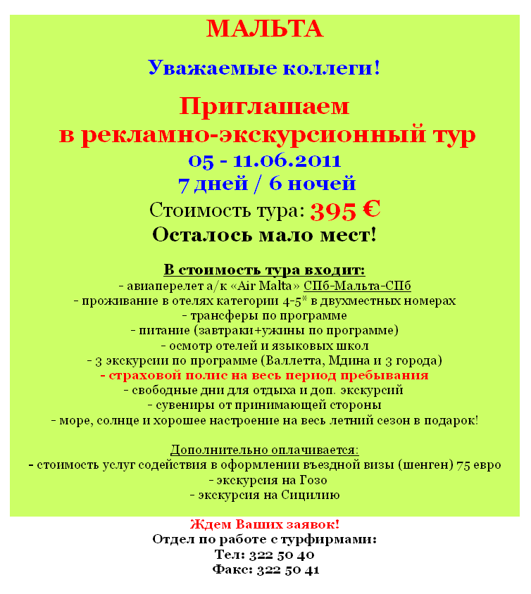 12 Май 2011 13:00:57 МАЛЬТА. Рекламно-экскурсионный тур 05-11.06.2011. ПОСЛЕДНИЕ МЕСТА! от фирмы ИНТУРИСТ