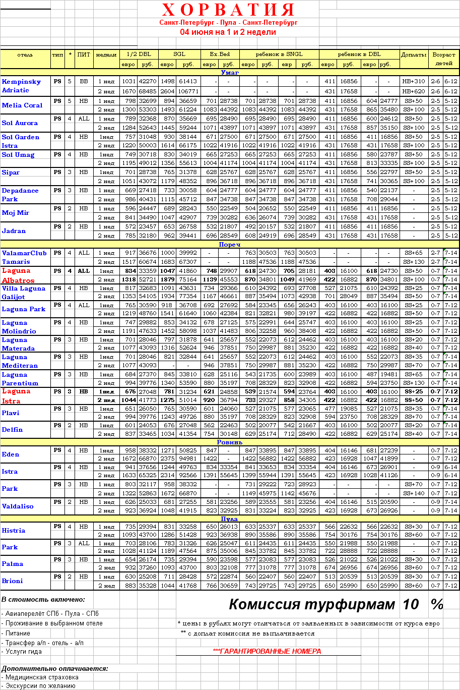 10 Май 2011 15:04:52 ХОРВАТИЯ. 04.06-18.06 Пула, полуостров Истра, гарантированные номера от фирмы АКАДЕМИЯ