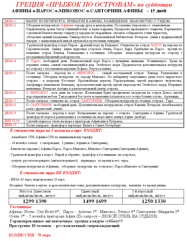 10 Май 2011 18:08:18 ГРЕЦИЯ. ПРЫЖОК ПО ОСТРОВАМ по субботам на 15 дней до октября от фирмы ЛАГУНА