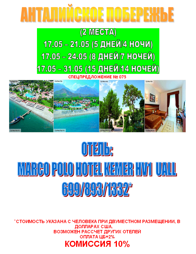 12 Май 2011 14:10:43 ТУРЦИЯ. Анталия 17/05 на 4,7,14 ночей от фирмы TRIVE ТУР