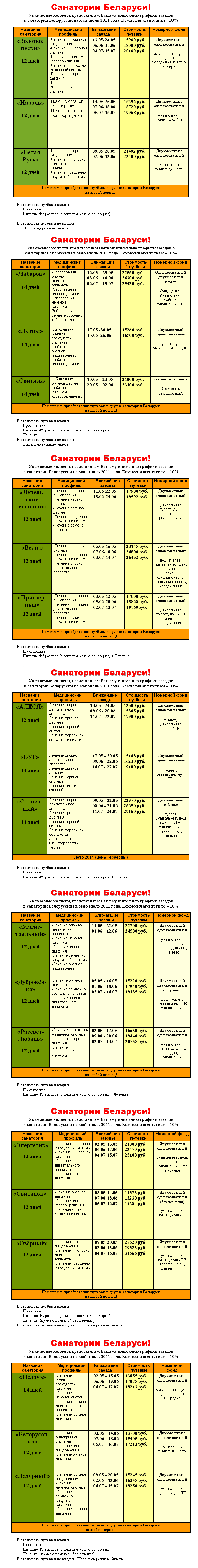 13 Май 2011 15:03:21 БЕЛОРУССИЯ - Санатории от фирмы DISCOVERY TOUR