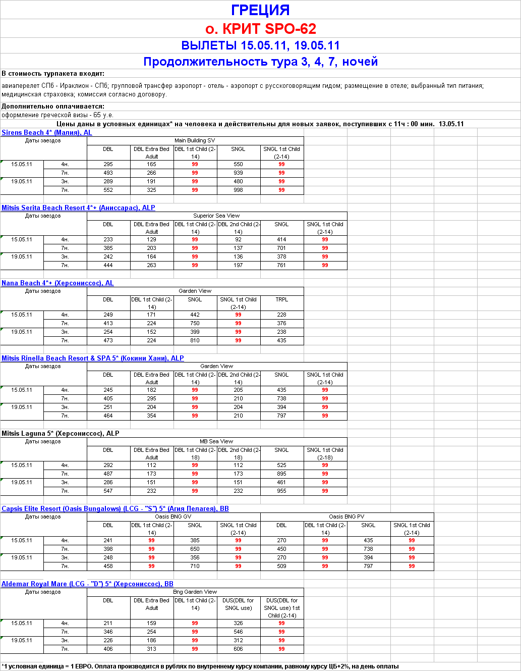 ГРЕЦИЯ, о.КРИТ - ВЫЛЕТ 15.05, 19.05 - ALDEMAR, CAPSIS, MITSIS и SIRENS от 211 у.е., дети 99 у.е. от фирмы ЮЖНЫЙ КРЕСТ |