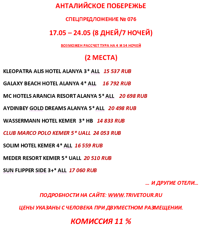 13 Май 2011 15:03:42 ТУРЦИЯ АНТАЛИЯ 17/05 СУПЕР СПО! от фирмы TRIVE ТУР