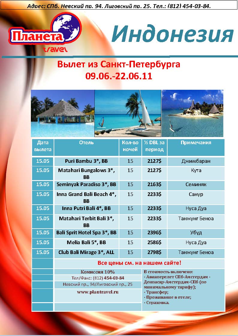 16 Май 2011 15:15:27 ИНДОНЕЗИЯ из СПб от 2127$ от фирмы ПЛАНЕТА TRAVEL