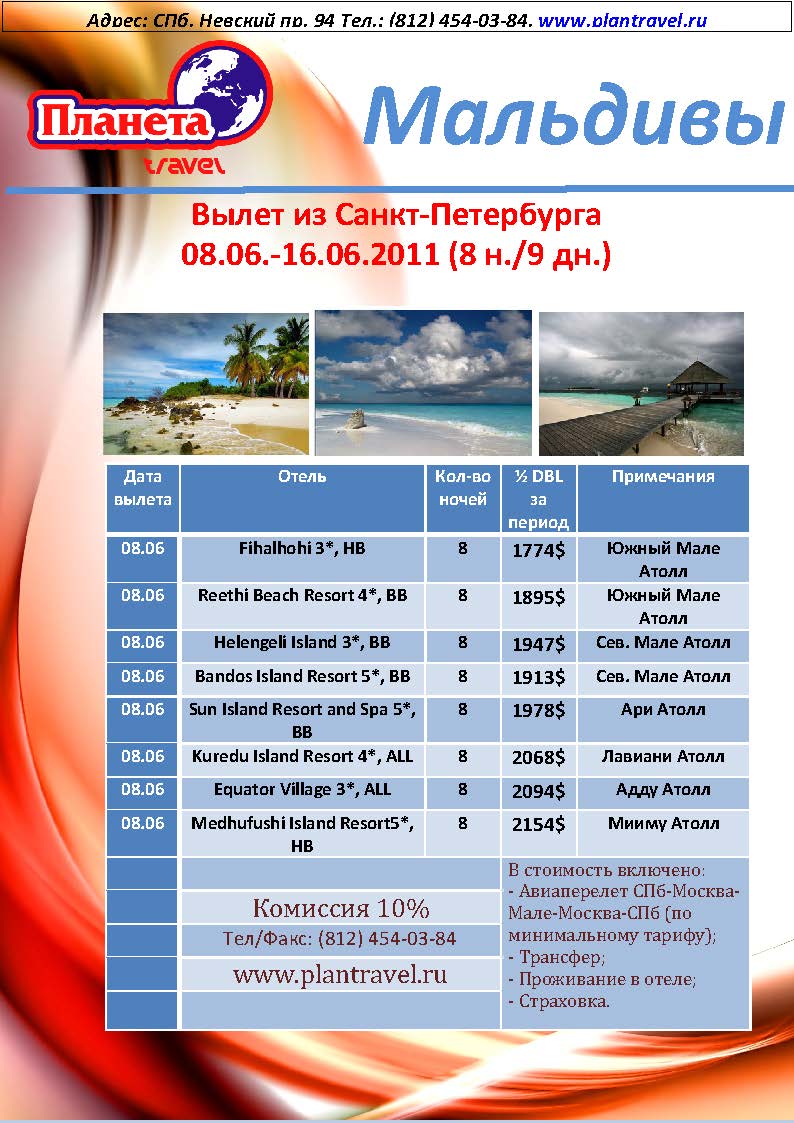 17 Май 2011 12:10:57 МАЛЬДИВЫ из СПб от 1774$ от фирмы ПЛАНЕТА ТРЭВЕЛ