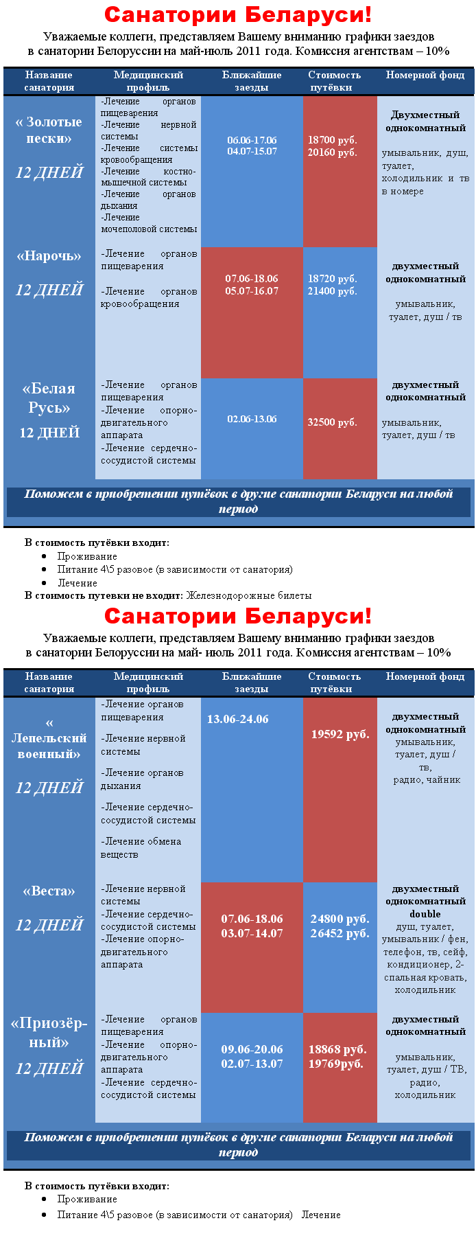 17 Май 2011 16:08:24 БЕЛОРУССИЯ - САНАТОРИИ - МАЙ-ИЮЛЬ - ком. 10% от фирмы DISCOVERY TOUR
