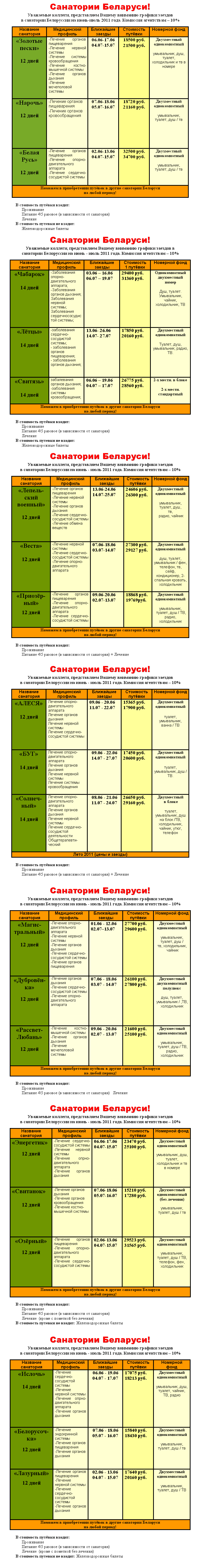 25 Май 2011 12:10:54 БЕЛОРУССИЯ - Санатории от фирмы DISCOVERY TOUR