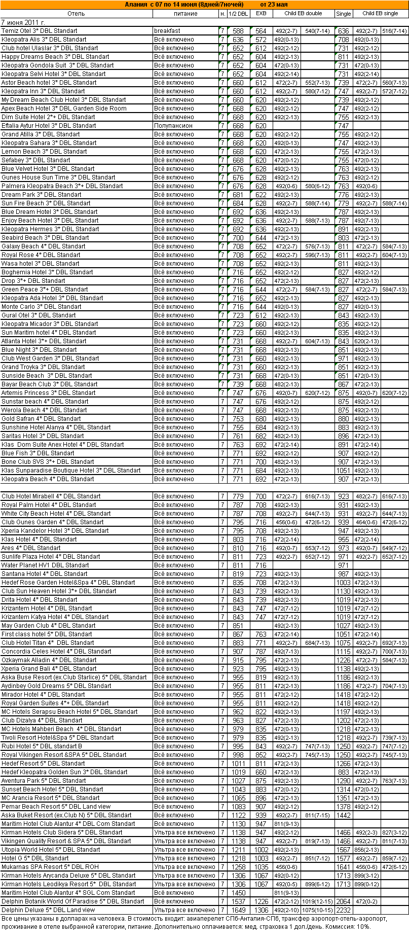 26 Май 2011 10:50:27 ТУРЦИЯ. Алания с 07 по 14 июня (8дней/7ночей) от фирмы АЛМА ТУР