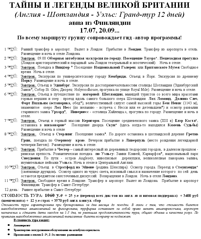 26 Май 2011 16:18:18 АНГЛИЯ-ШОТЛАНДИЯ-УЭЛЬС 17.07 повышение комиссии для новых бронирований от фирмы ВИКТОРИЯ