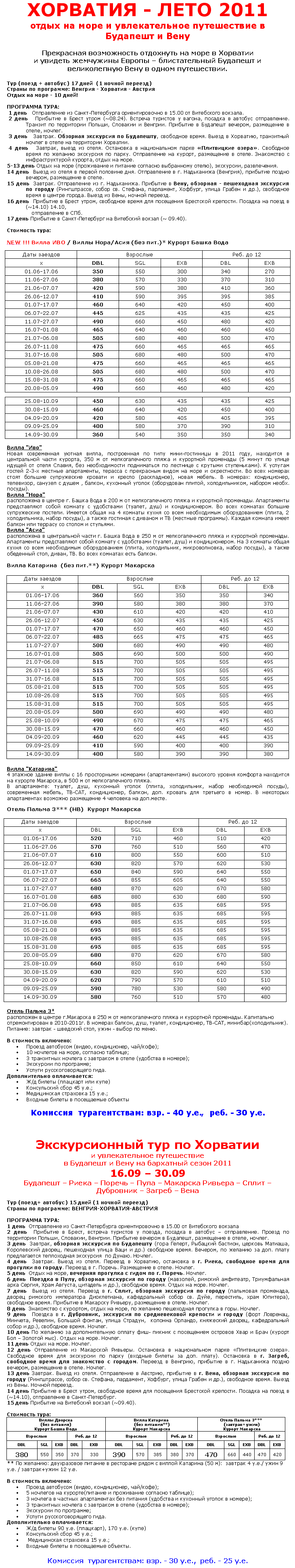 30 Май 2011 11:16:51 ХОРВАТИЯ (ПОЕЗД+АВТОБУС) - МОРЕ + Будапешт+Вена от фирмы БАЛТИЙСКИЙ БЕРЕГ