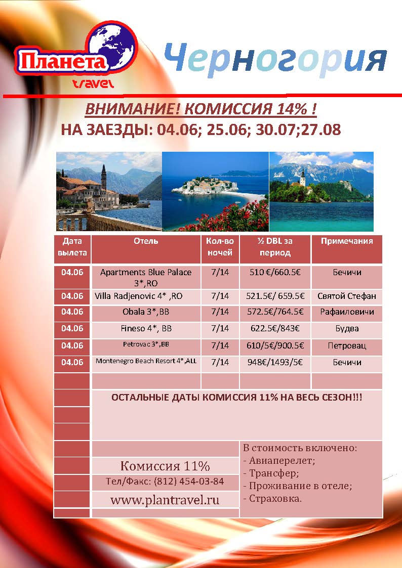 30 Май 2011 12:36:07 ЧЕРНОГОРИЯ от 510 евро! Комиссия 14% от фирмы ПЛАНЕТА ТРЭВЕЛ
