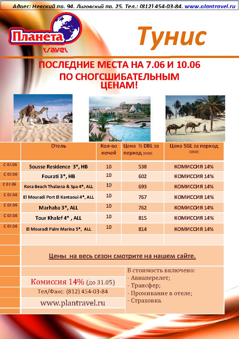 31 Май 2011 14:13:11 ТУНИС 07.06 от фирмы ПЛАНЕТА TRAVEL