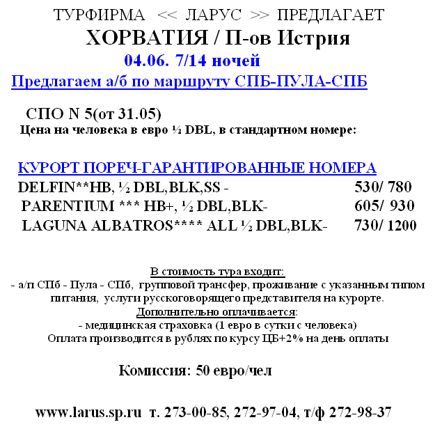 31 Май 2011 14:18:52 ХОРВАТИЯ. П-ов Истрия 04.06. 7/14 ночей от фирмы ЛАРУС