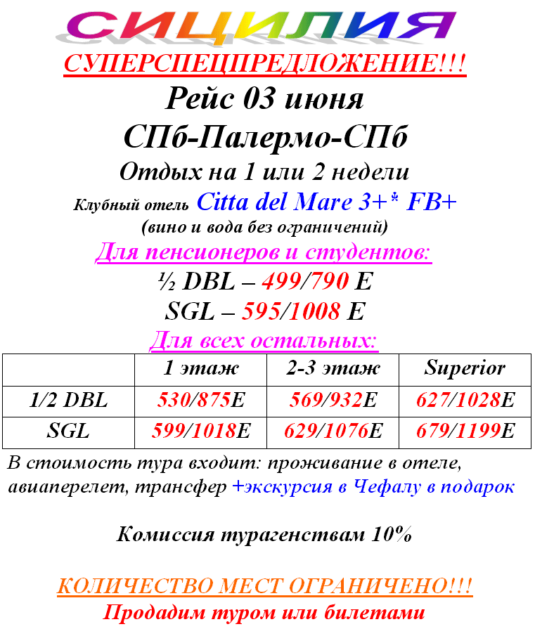 31 Май 2011 17:21:09 ИТАЛИЯ Сицилия. Вылет 03.06 на 1 и 2 недели. Горим, Супер Spo 2 от фирмы АВАТАРА