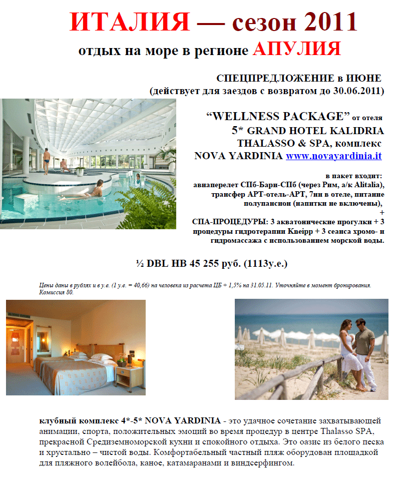 01 Июн 2011 11:31:55 ИТАЛИЯ - ОТДЫХ В АПУЛИИ, СПЕЦПРЕДЛОЖЕНИЕ от фирмы АРТ-ТРЕВЕЛ