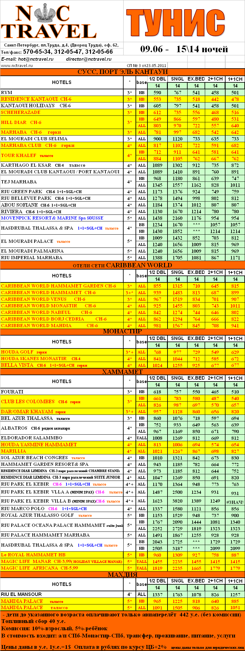 01 Июн 2011 12:55:18 ТУНИС. 09.06 - 1514 ночей от фирмы NC TRAVEL