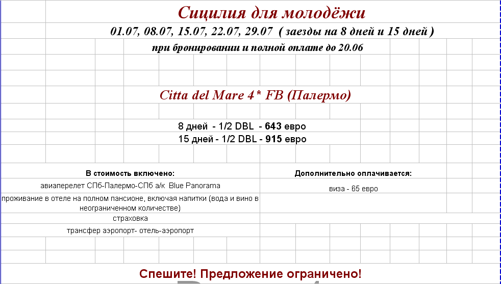 ИТАЛИЯ. Сицилия для молодёжи 01.07, 08.07, 15.07, 22.07, 29.07 - от фирмы ПРИМА |