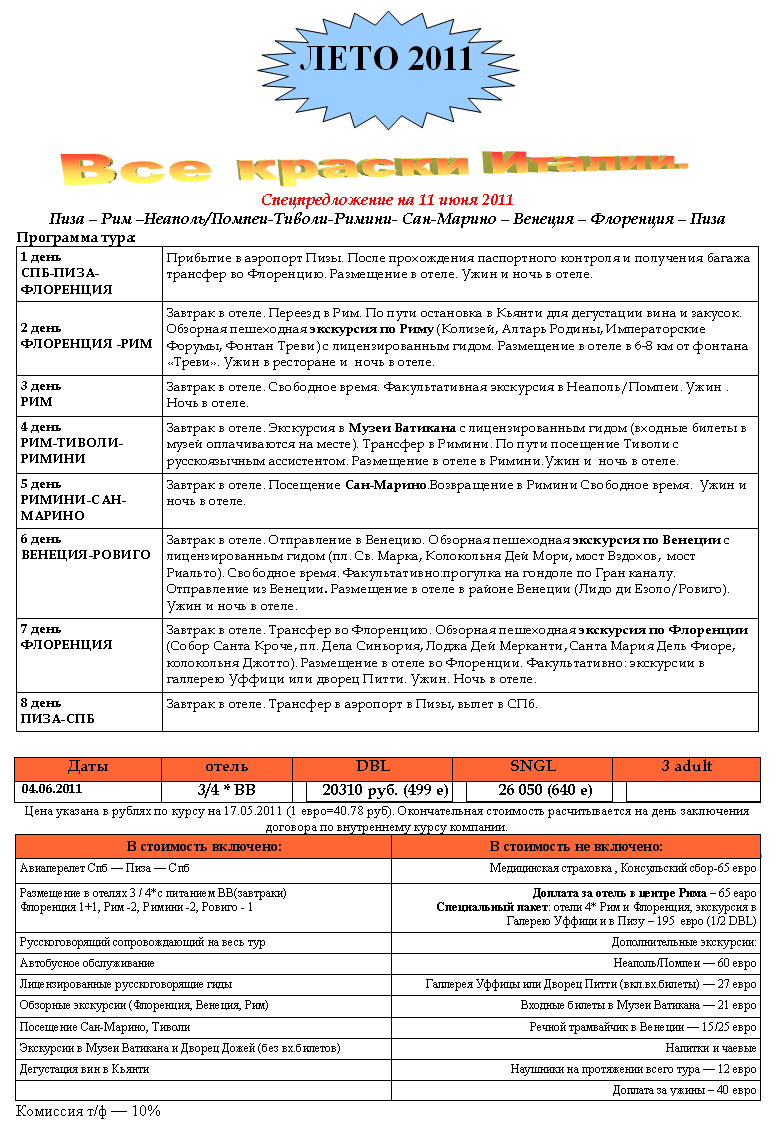 06 Июн 2011 15:04:07 ИТАЛИЯ. Все краски Италии (Пиза) СПО 11.06 от фирмы ФЛАМИНГО