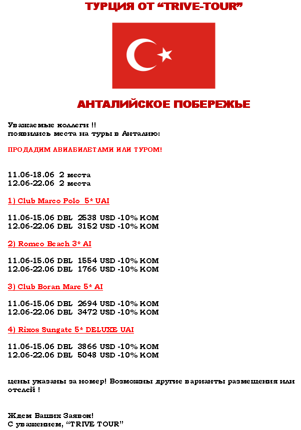 06 Июн 2011 16:02:01 ТУРЦИЯ Анталия 11/06, 12/06 от фирмы TRIVE ТУР