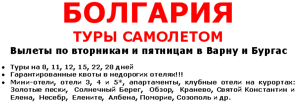 07 Июн 2011 12:12:09 БОЛГАРИЯ - АВИАБИЛЕТЫ и ТУРЫ ЛЕТО 2011 от фирмы БАЛТИЙСКИЙ БЕРЕГ