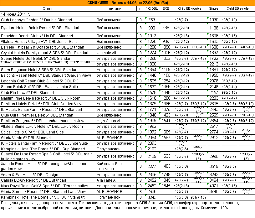 07 Июн 2011 12:15:31 ТУРЦИЯ. Белек с 14.06 по 22.06 (9дн/8н) - от фирмы АЛМА ТУР