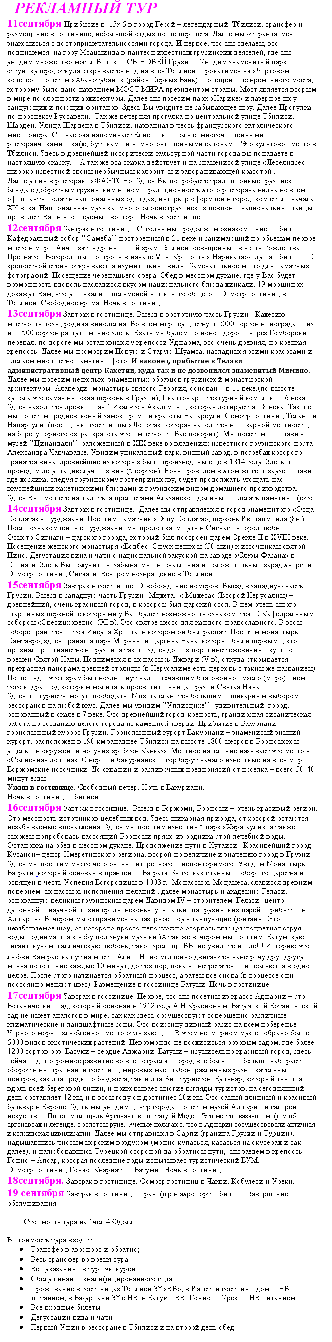 20 Июн 2011 10:19:16 ГРУЗИЯ 11.09-19.09 - РЕКЛАМНЫЙ ТУР от фирмы MILLENIUM TOUR