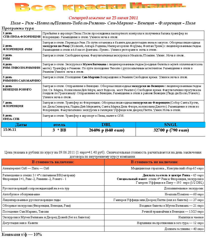 09 Июн 2011 16:03:14 ИТАЛИЯ - "Все Краски Италии" с 25.06 от фирмы ФЛАМИНГО