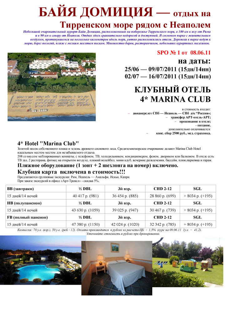 10 Июн 2011 11:38:16 ИТАЛИЯ - 25.06-09.07, 02.07-16.07 Marina Club 4*, Байя Домиция (Неаполь, Тирренское Море) от фирмы АРТ-ТРЕВЕЛ