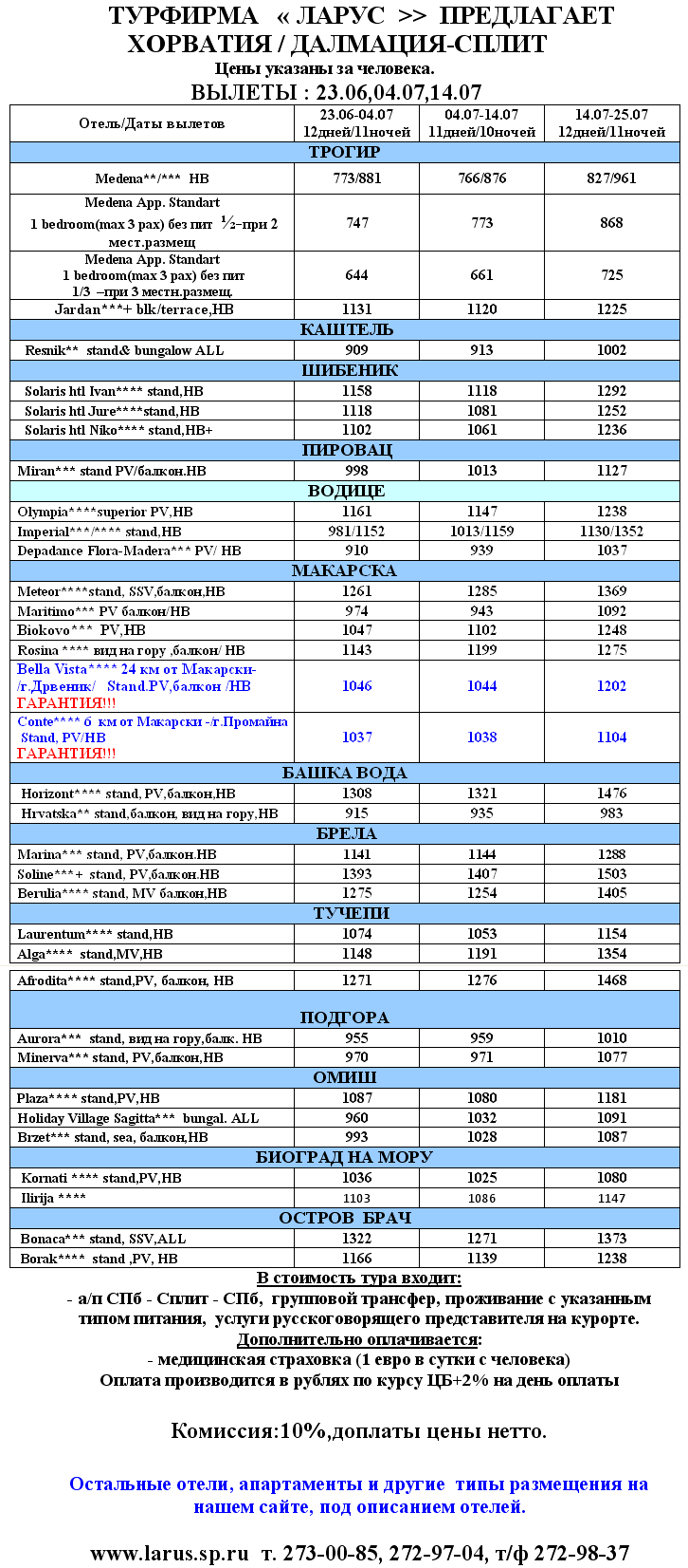 10 Июн 2011 11:40:07 ХОРВАТИЯ - ДАЛМАЦИЯ-СПЛИТ с 23.06, 04.07, 14.07 от фирмы ЛАРУС