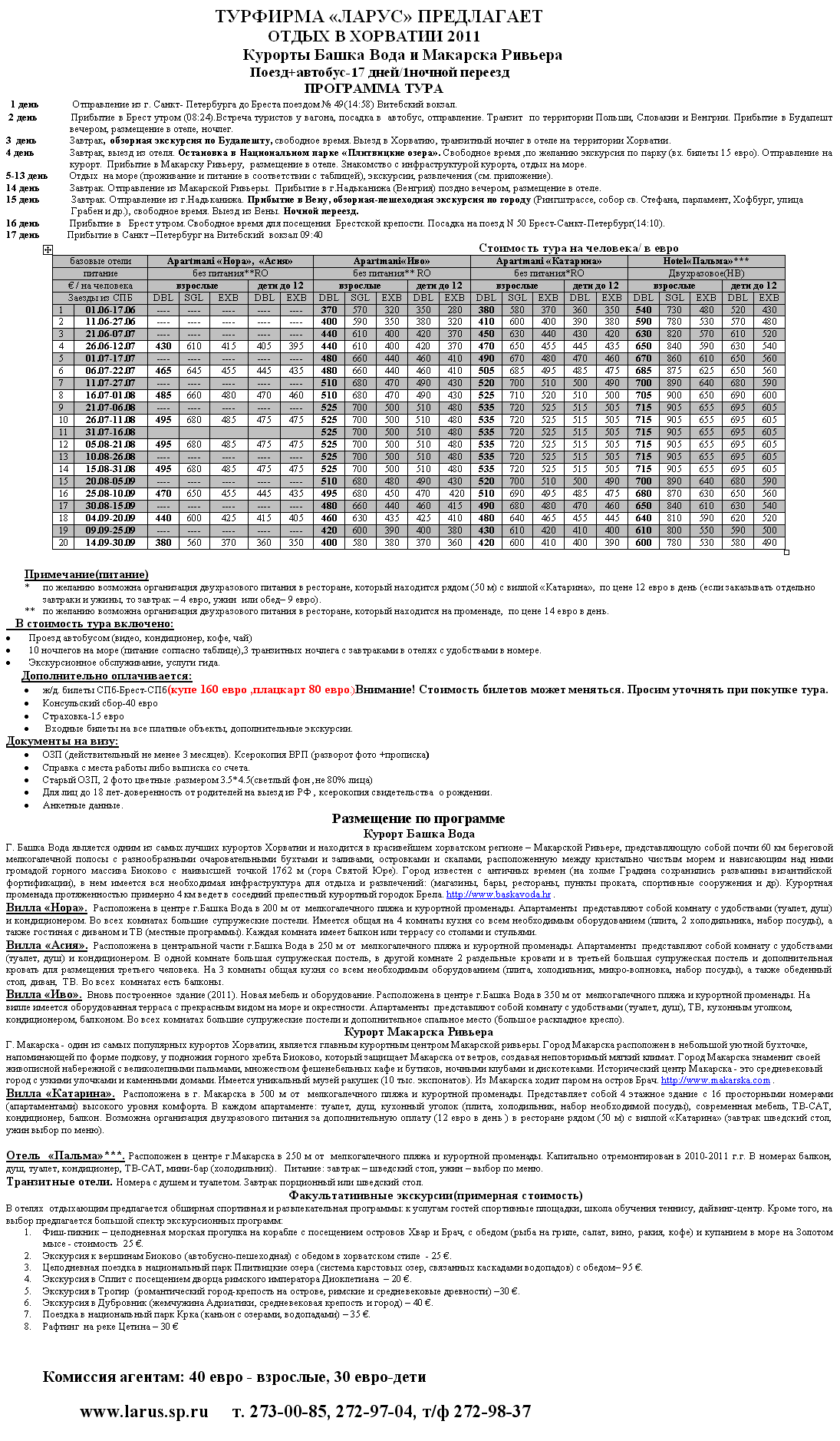 10 Июн 2011 11:41:21 ХОРВАТИЯ - Башка Вода и Макарска Ривьера, 17дн от фирмы ЛАРУС