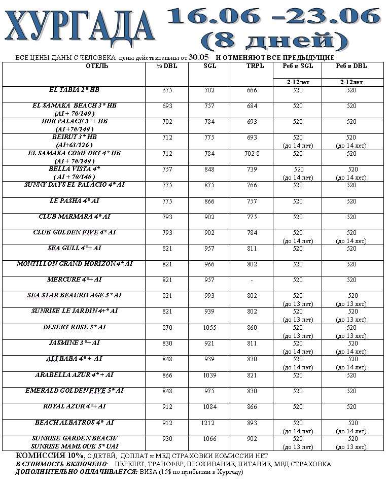 10 Июн 2011 12:59:13 ЕГИПЕТ. Хургада на 16.06 от фирмы ФЛАМИНГО