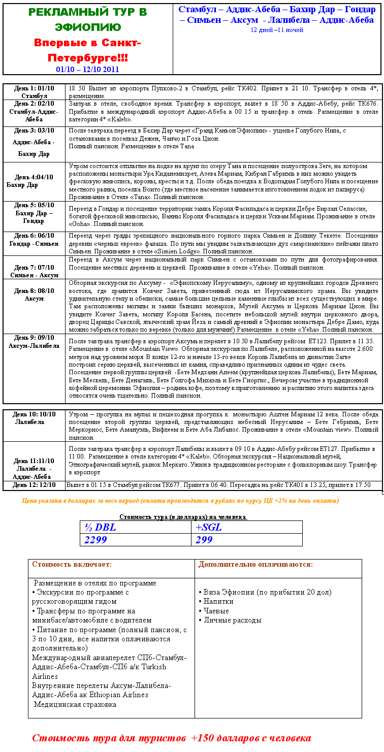 11 Июн 2011 11:03:15 ЭФИОПИЯ 01.10-12.10 РЕКЛАМНЫЙ ТУР от фирмы ВЕТЕР СТРАНСТВИЙ