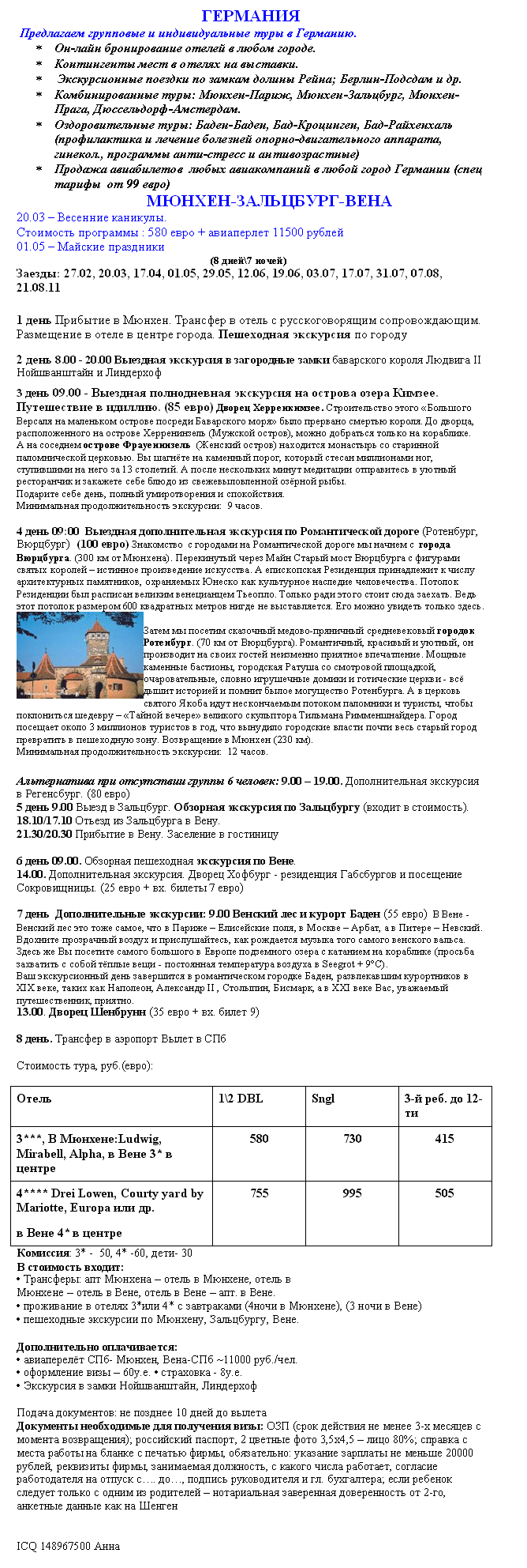 14 Июн 2011 17:31:53 ГЕРМАНИЯ. МЮНХЕН-ЗАЛЬЦБУРГ-ВЕНА от фирмы ТРАК СТАР