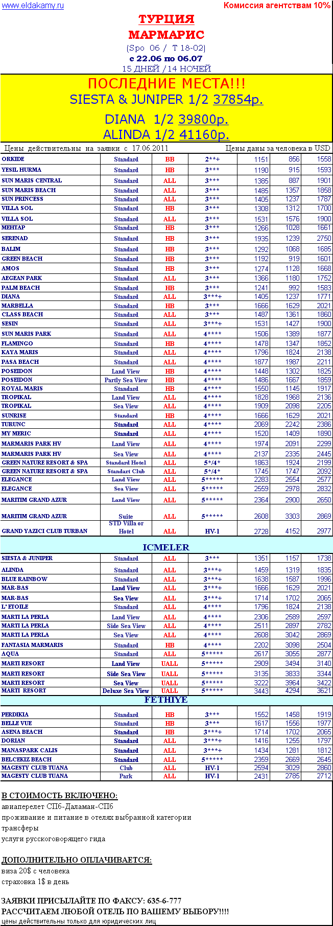 17 Июн 2011 15:44:54 ТУРЦИЯ - МАРМАРИС 22.06-06.07 от фирмы EL DAKAMY TRAVEL