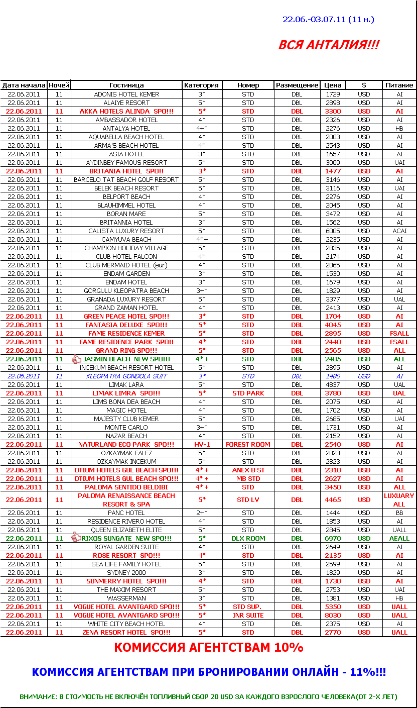 20 Июн 2011 11:46:37 ТУРЦИЯ АНТАЛИЯ 22.08.11 11 НОЧЕЙ / 12 ДНЕЙ - НОВОЕ СПО ОТ ОТЕЛЕЙ от фирмы КОНСОРД