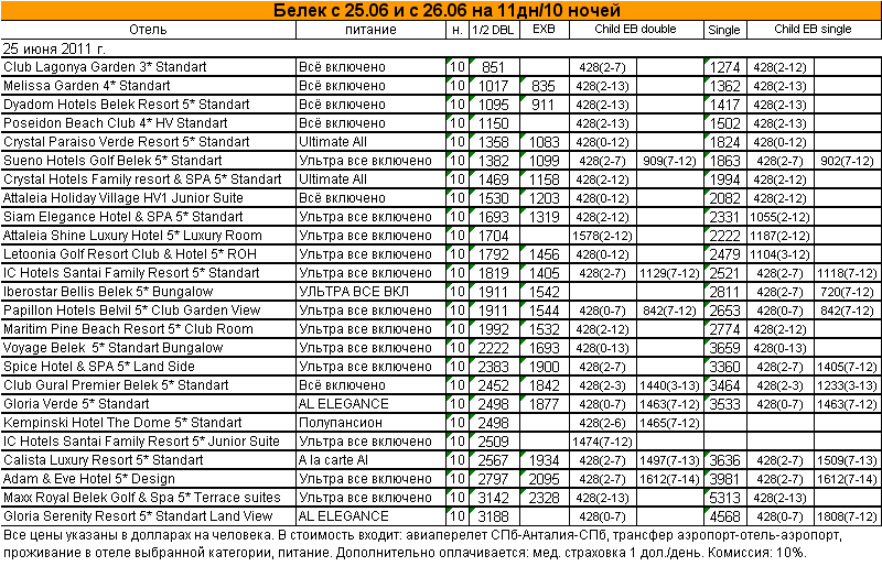 21 Июн 2011 11:58:04 ТУРЦИЯ. Белек с 25.06 и с 26.06 на 11дн/10 ночей от фирмы АЛМА ТУР