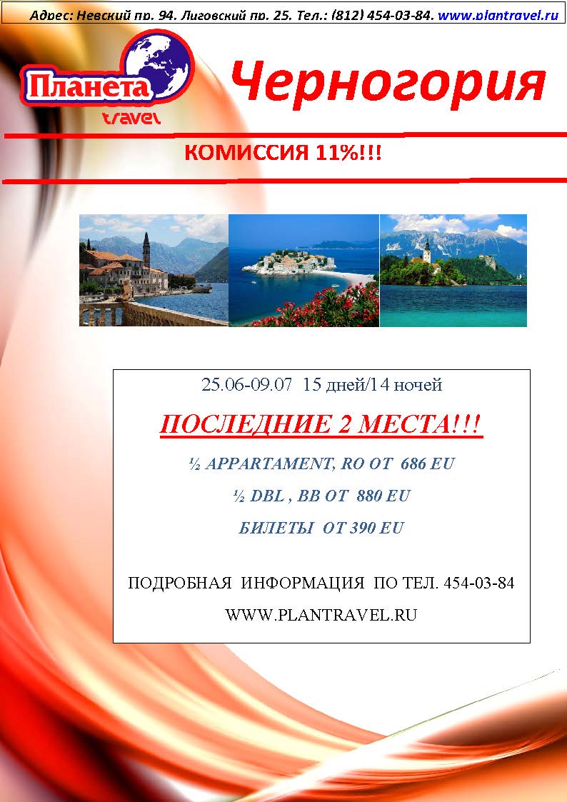 21 Июн 2011 14:59:21 ЧЕРНОГОРИЯ 25.06 ПОСЛЕДНИЕ 2 МЕСТА от фирмы ПЛАНЕТА TRAVEL