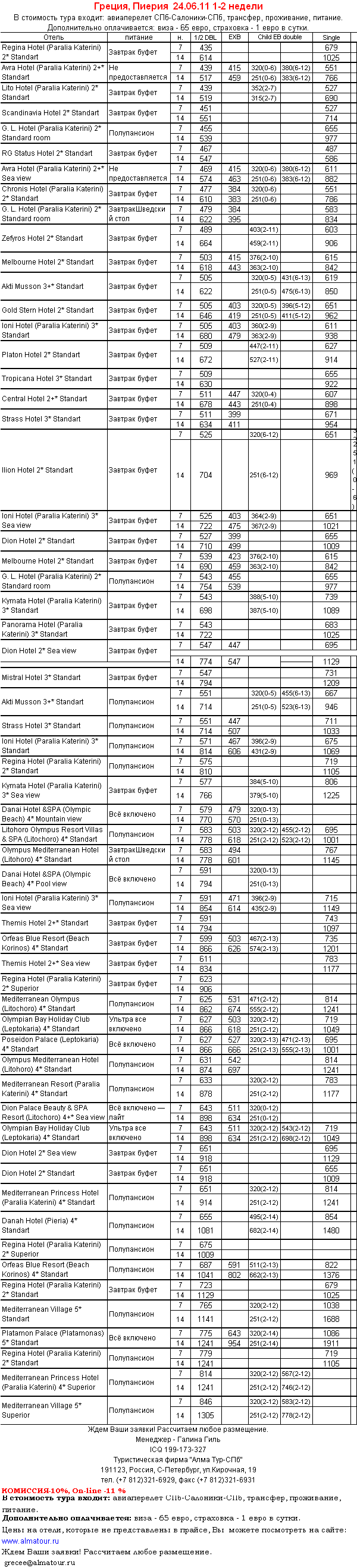 21 Июн 2011 15:34:12 ГРЕЦИЯ - ПИЕРИЯ 24.06 на 1/2 нед от фирмы АЛМА ТУР