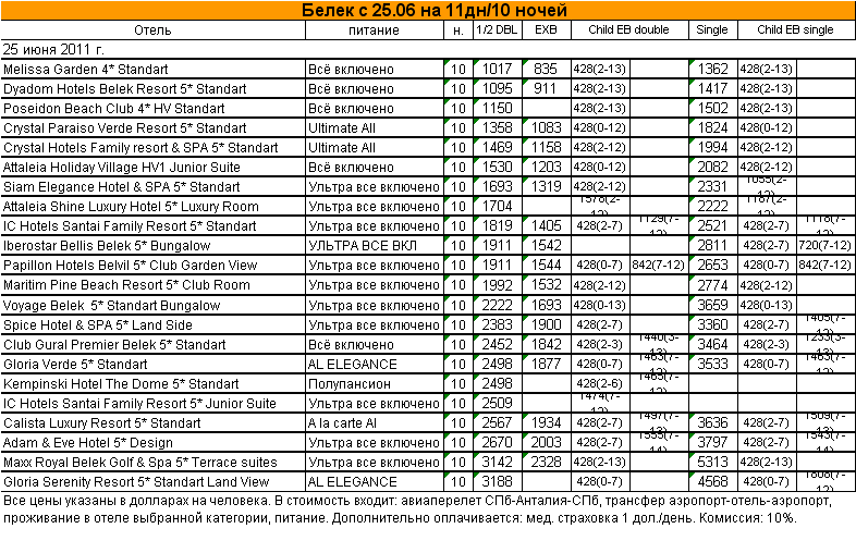23 Июн 2011 14:05:15 ТУРЦИЯ. Белек с 25.06 на 11дн/10 ночей - от фирмы АЛМА ТУР