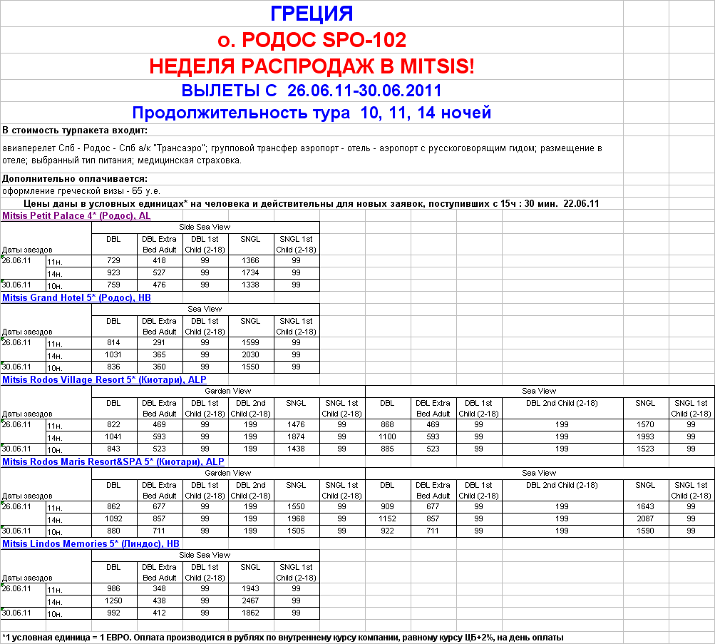 ГРЕЦИЯ. о.РОДОС - ВЫЛЕТЫ 26.06, 30.06 - НЕДЕЛЯ РАСПРОДАЖ В MITSIS ДЕТИ 99 у.е. от фирмы ЮЖНЫЙ КРЕСТ |