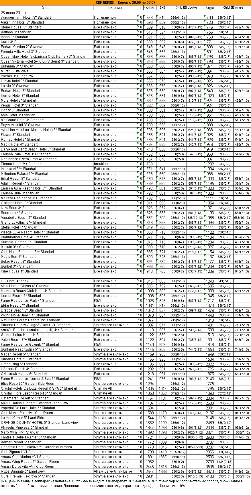 23 Июн 2011 11:39:21 ТУРЦИЯ. Кемер с 26.06 по 06.07 от фирмы АЛМА ТУР