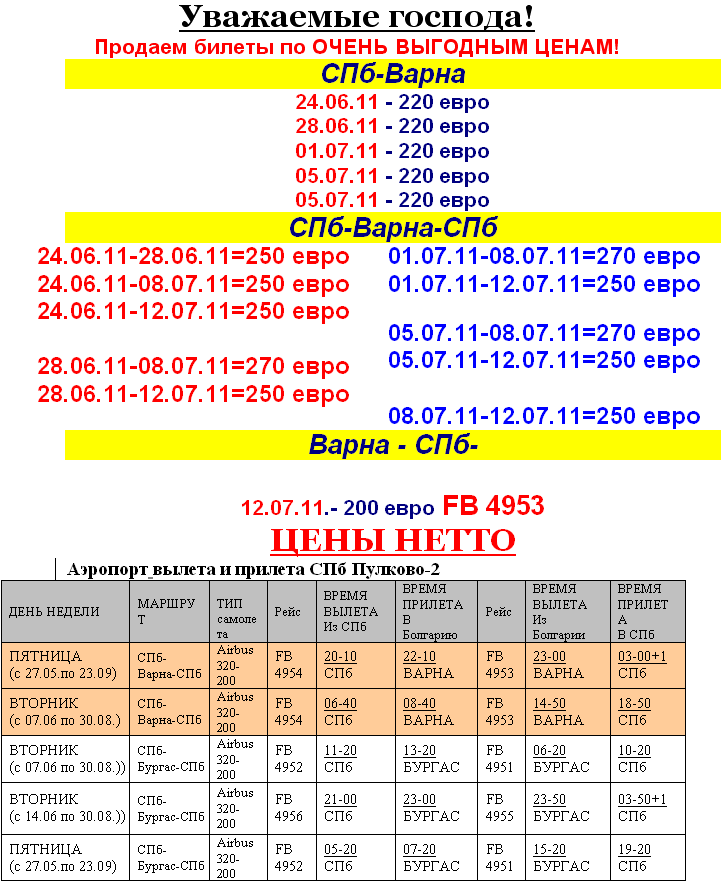 23 Июн 2011 13:58:01 БОЛГАРИЯ - АВИАБИЛЕТЫ - СПб-Варна, Варна-СПб от фирмы АЛМА ТУР