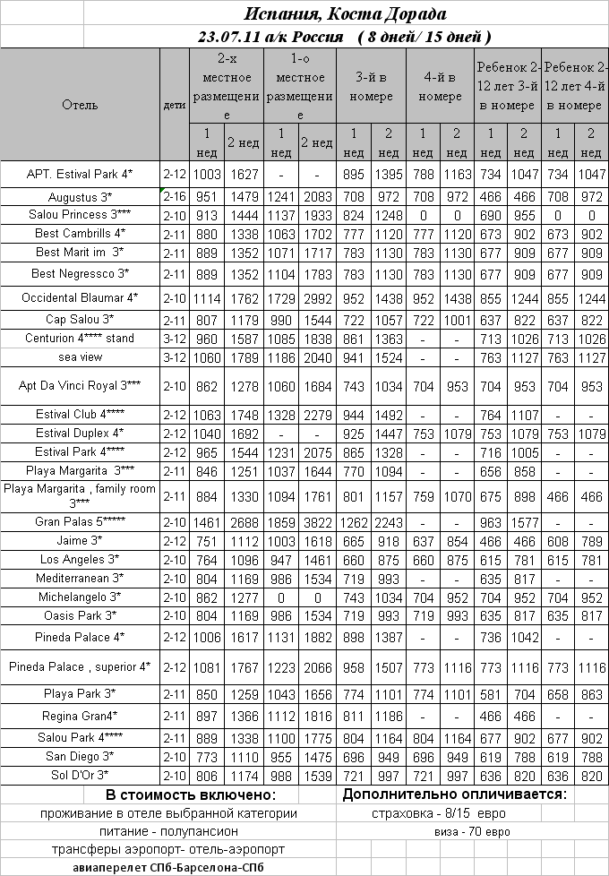 24 Июн 2011 14:11:49 ИСПАНИЯ. Коста Дорада 23.07.11 а/к Россия ( 8 дней/ 15 дней ) от фирмы ПРИМА