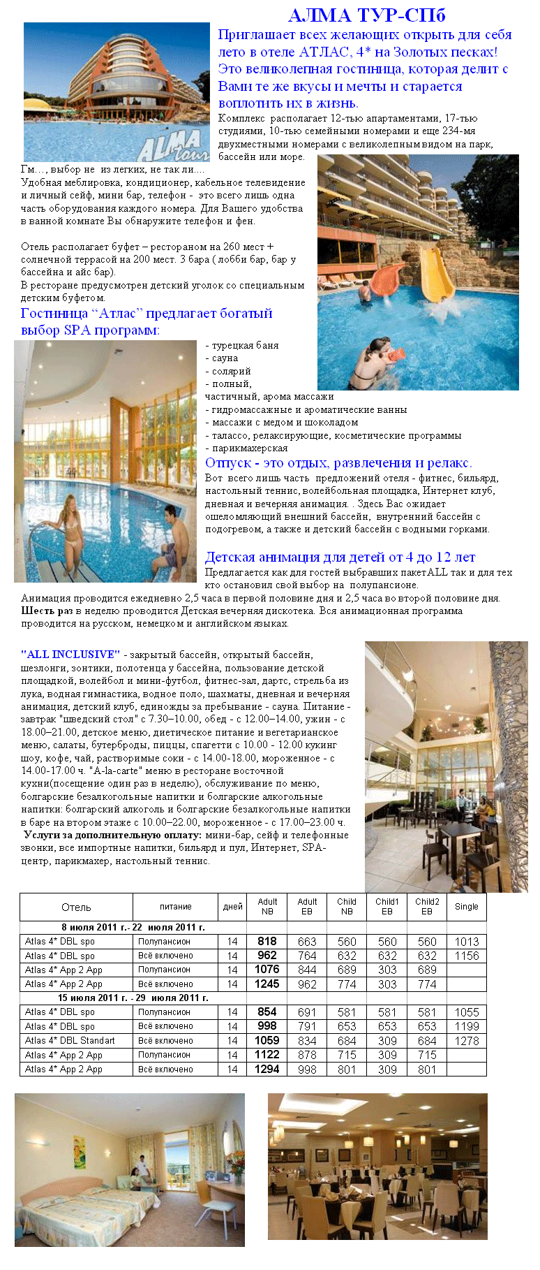 24 Июн 2011 14:26:03 БОЛГАРИЯ - SPO Atlas Golden sands c 08.07.11 и с 15.07.11 от фирмы АЛМА ТУР