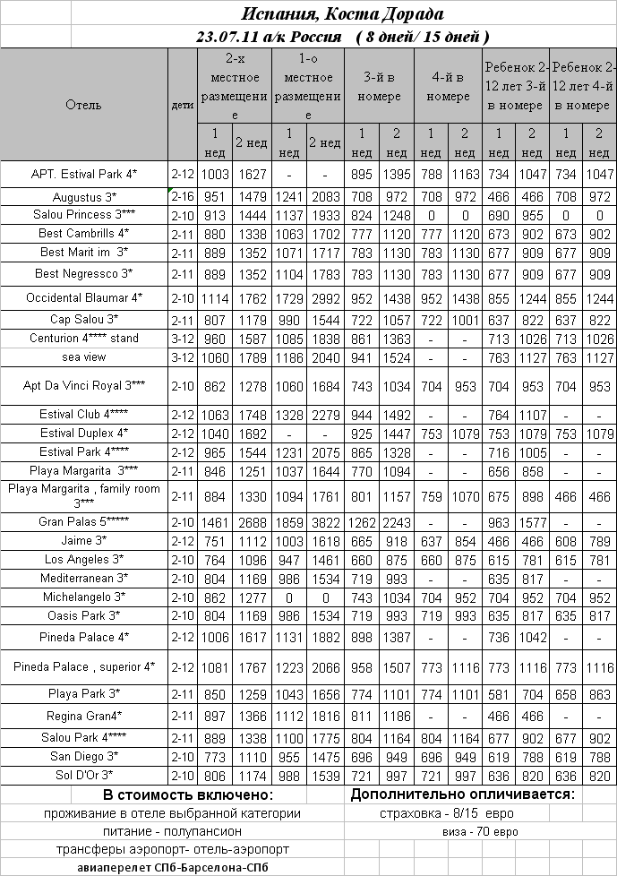 27 Июн 2011 17:00:34 ИСПАНИЯ. Коста Дорада 23.07.11 а/к Россия ( 8 дней/ 15 дней ) от фирмы ПРИМА