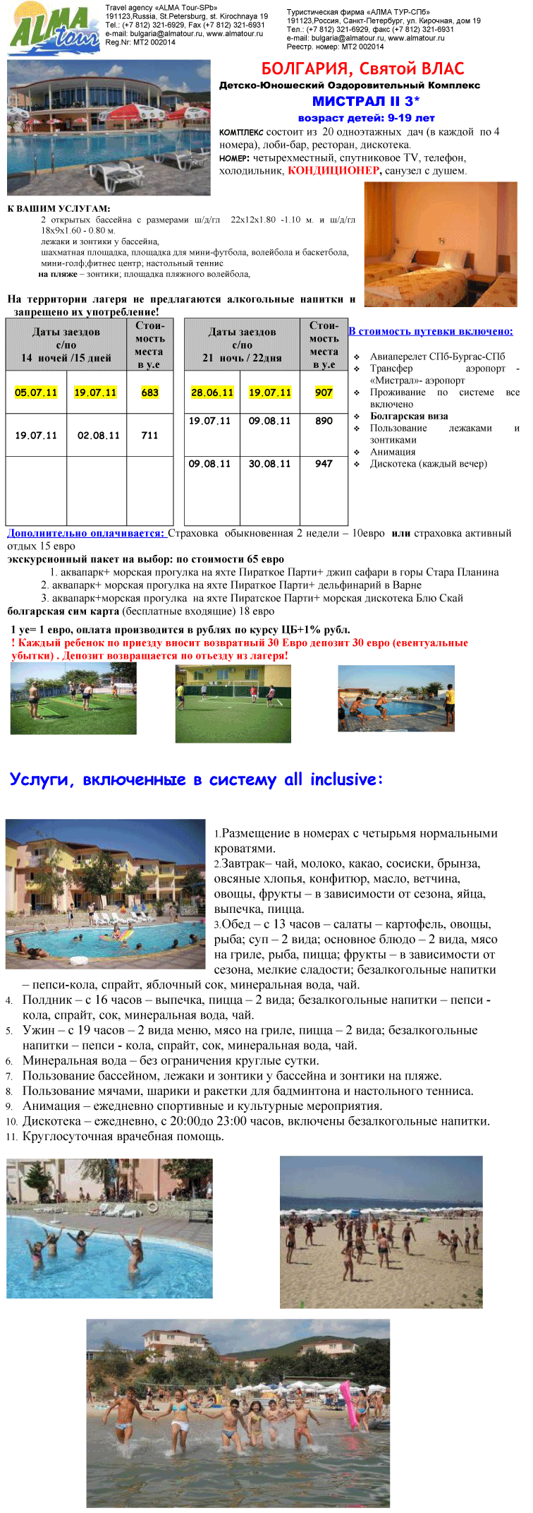БОЛГАРИЯ - ДЕТСКИЙ ЛАГЕРЬ МИСТРАЛ 05.07 ПОСЛЕДНИЙ ШАНС! СУПЕРСПО от фирмы АЛМА ТУР |