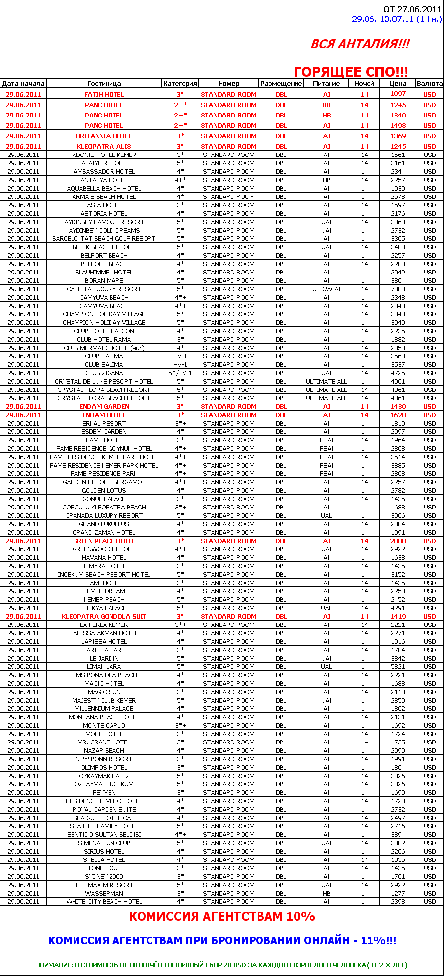 27 Июн 2011 19:30:15 ТУРЦИЯ АНТАЛИЯ 29.06.11 14 НОЧЕЙ - ГОРЯЩИЙ ТУР-ПОСЛЕДНИЕ МЕСТА от фирмы КОНСОРД