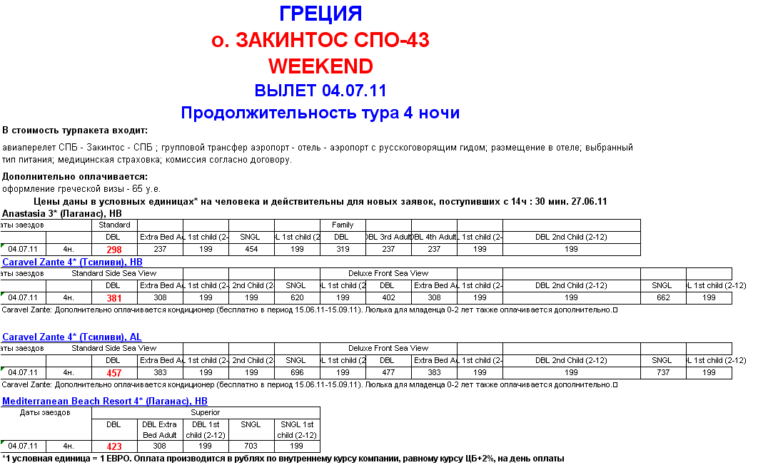 ГРЕЦИЯ, о.ЗАКИНТОС - ВЫЛЕТ 04.07 - WEEKEND от 298 у.е. от фирмы ЮЖНЫЙ КРЕСТ |